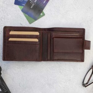 Genuine Leather Trifold Wallet with – Available in Black, Brown and Cognac.