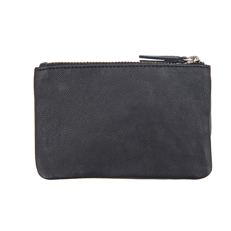 The Black Leather Pouch with Keychain is a compact and functional solution for keeping your essentials safe. Crafted from soft, premium leather, this RFID-secure coin purse features a zip closure to store coins and cash, plus an integrated keychain for added convenience.