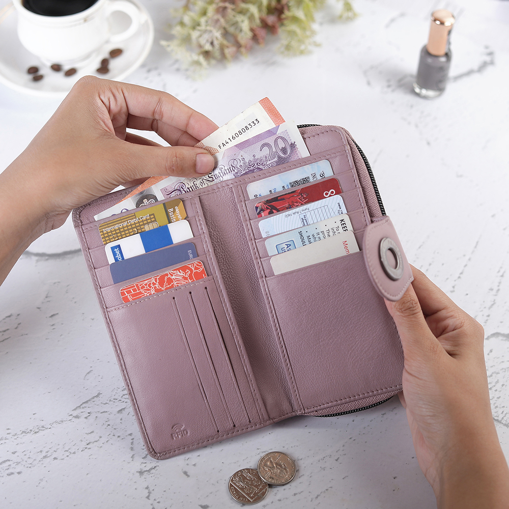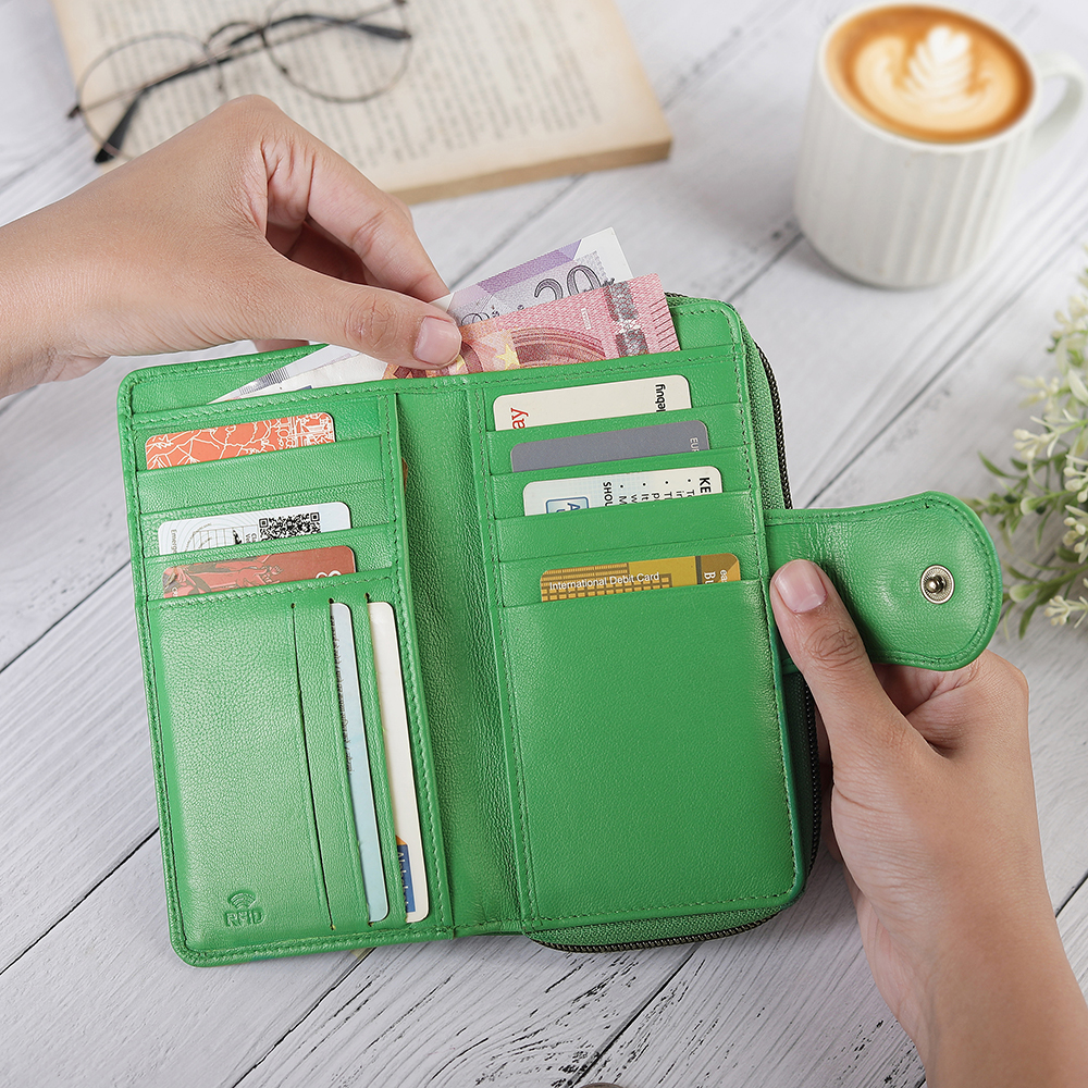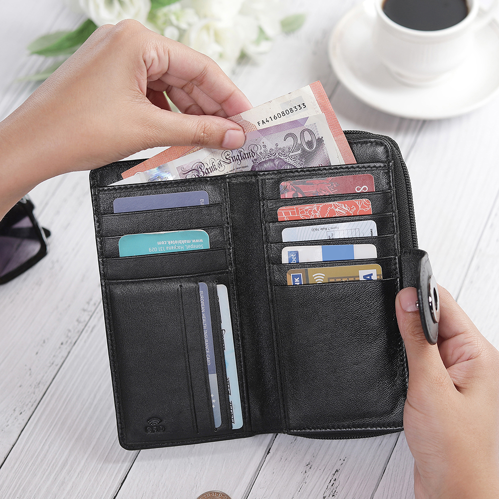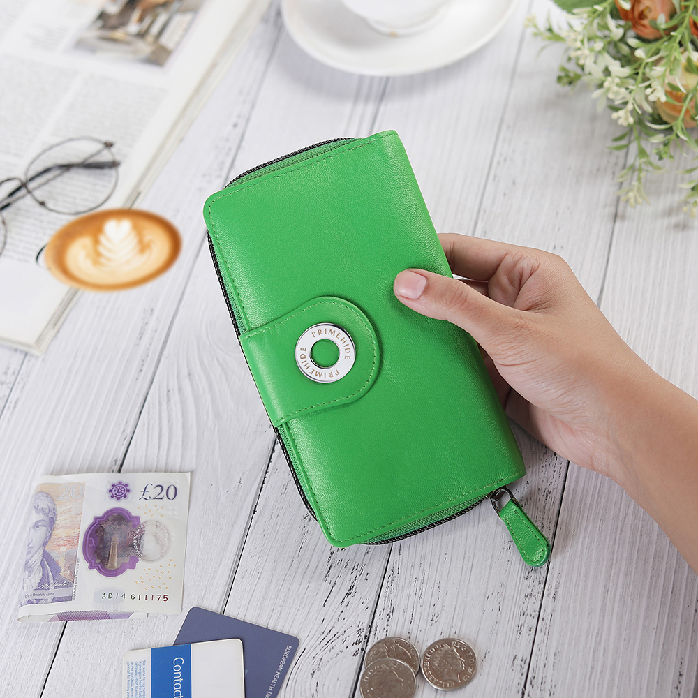 The Flavia Large Zip Purse is a premium Genuine Leather purse designed with RFID Security to protect your personal information. Featuring a Tab Closure, it offers ample storage with 12 Credit Card Slots, 2 Slip Pockets, and a Note Section. The purse also includes an External Zipped Coin Section along with an additional internal zipped section for added organisation, making it both stylish and highly functional for everyday use.