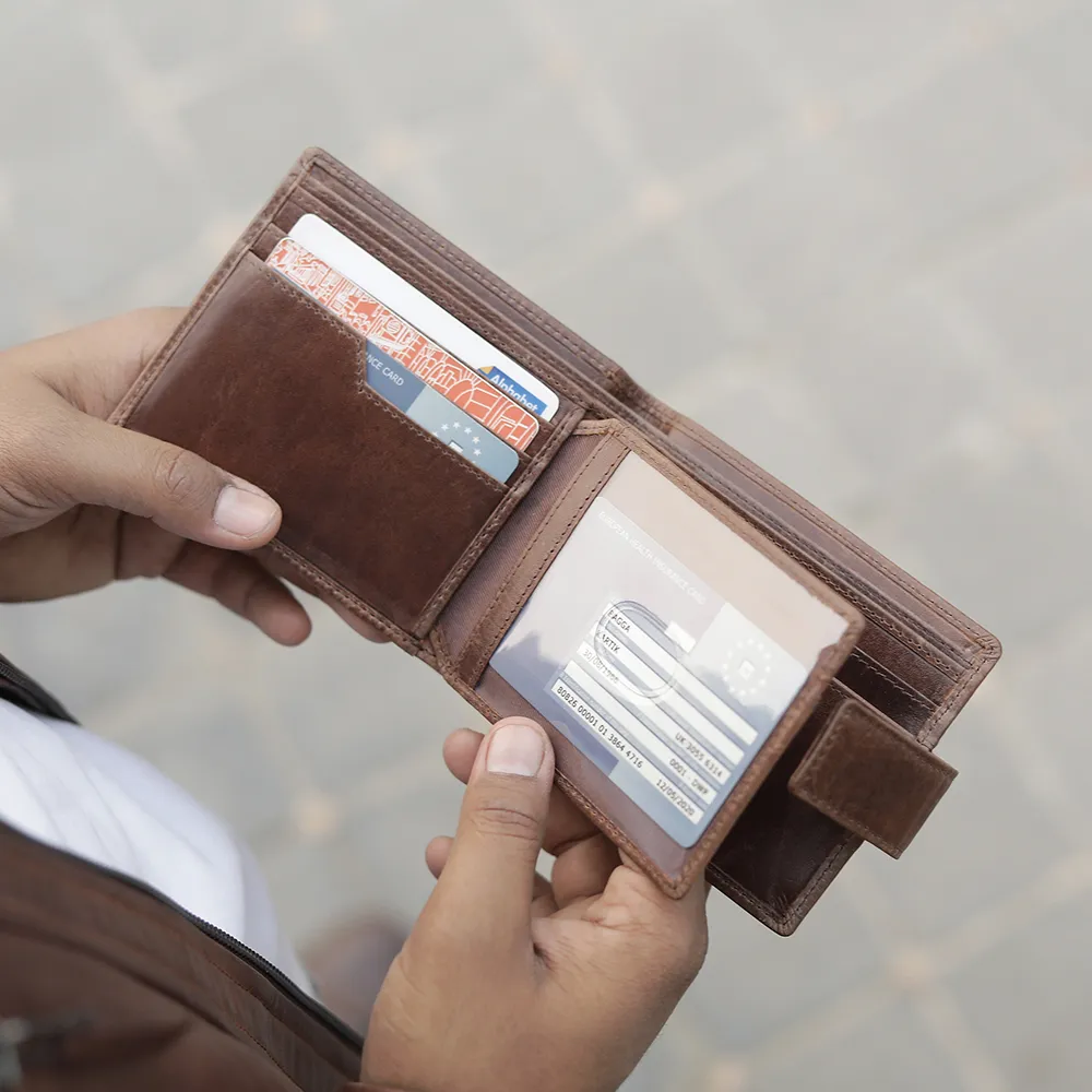 The Leather Card Wallet – Luis Alperto is crafted from Luxury Oiled Leather with a Distressed Finish, giving it a timeless, rugged look. Featuring a secure Tab Button Closure, multiple Credit Card Slots, an ID Window, and a Note Section, this wallet offers practical organisation. With added RFID Protection, it ensures your personal information is safe, blending style with functionality for everyday use.