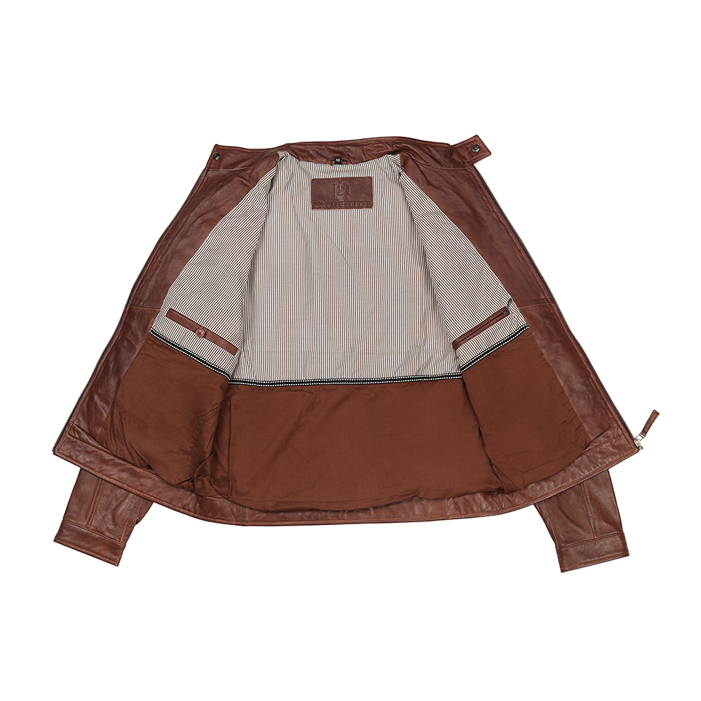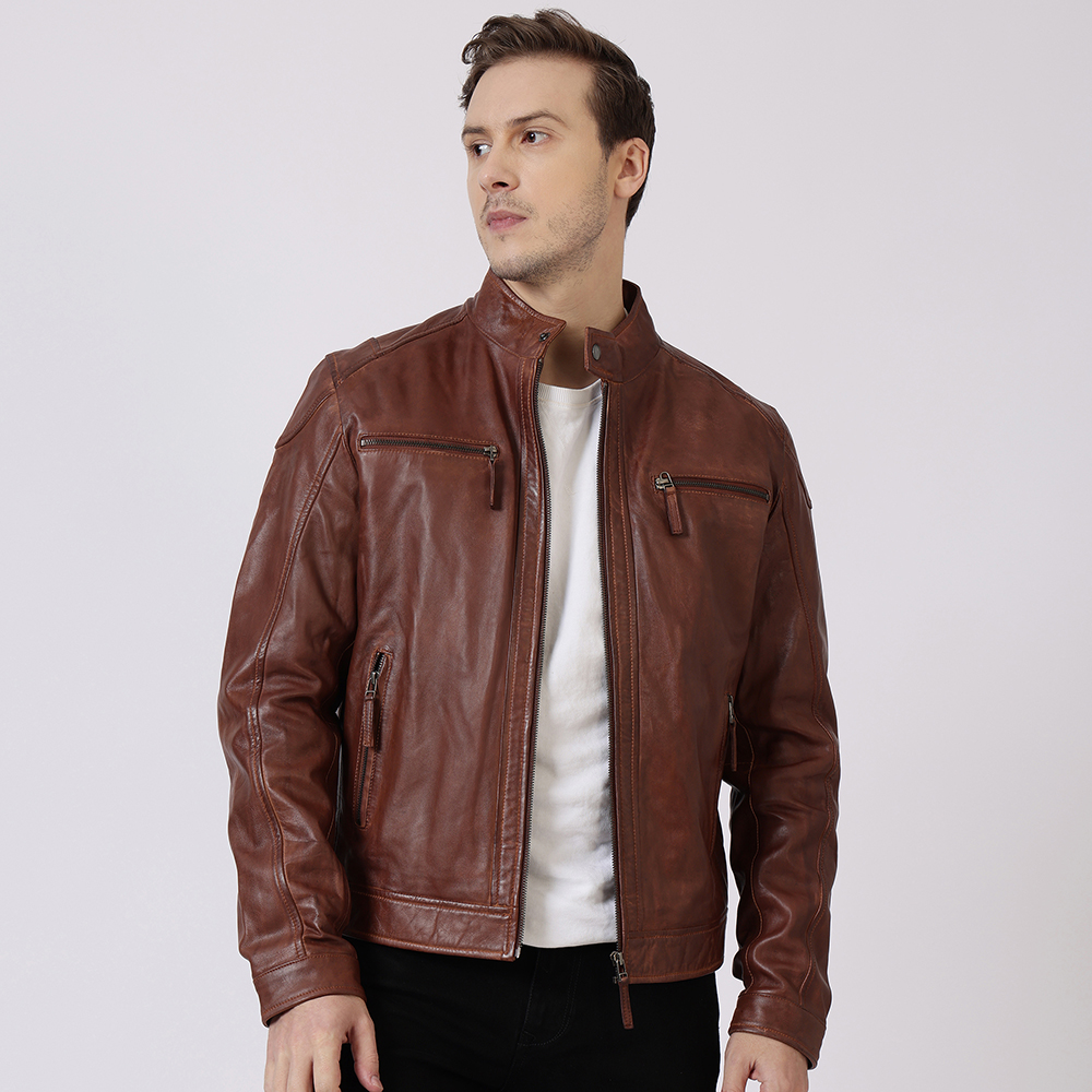 This Brown Moto Leather Jacket is a classic Biker Style Leather Jacket made from Premium Genuine Soft Sheepskin Leather. It features a Zipper Style Closure with a short tab collar and popper fastening, along with four functional pockets and popper cuff closures. This jacket combines timeless design with practicality, offering both style and comfort.
