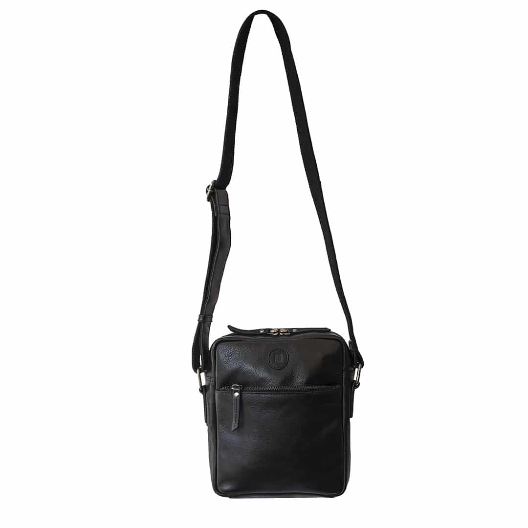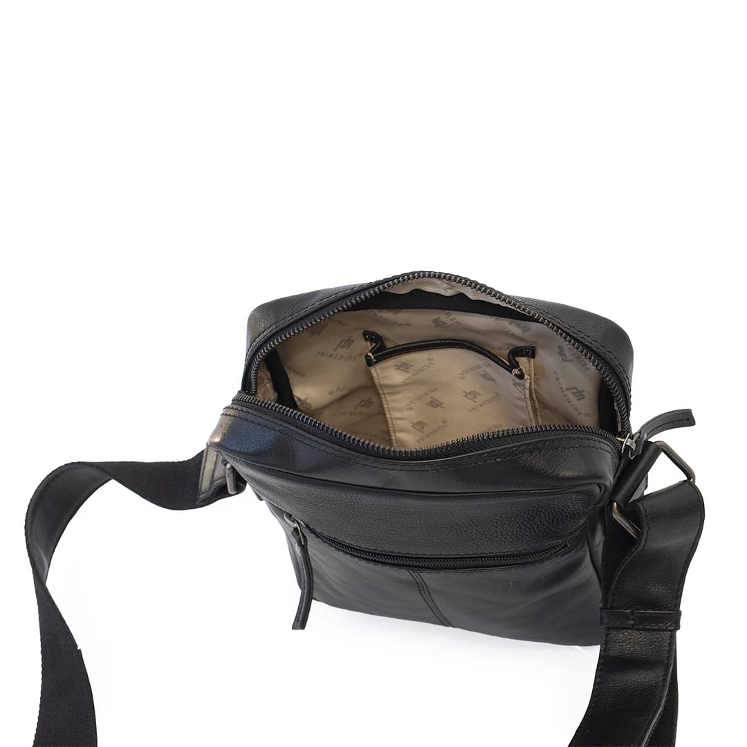 The Orion Leather Flight Bag is crafted from Real Leather and designed for stylish and practical travel. It features an Adjustable Cross-Body Leather Shoulder Strap for hands-free convenience and a Zip Top Fastening with a leather puller for secure closure. The bag includes a Front Zipped Pocket and a Back Zipped Pocket, both with leather pullers for easy access to essentials. The PRIMEHIDE Embossed Logo adds a signature touch of elegance.