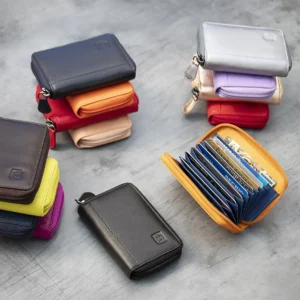 Keep your cards organised and protected with this RFID Leather Concertina Credit Card Wallet. Compact yet spacious, it’s crafted from genuine leather and designed with a secure zip-around fastener for easy access and peace of mind.