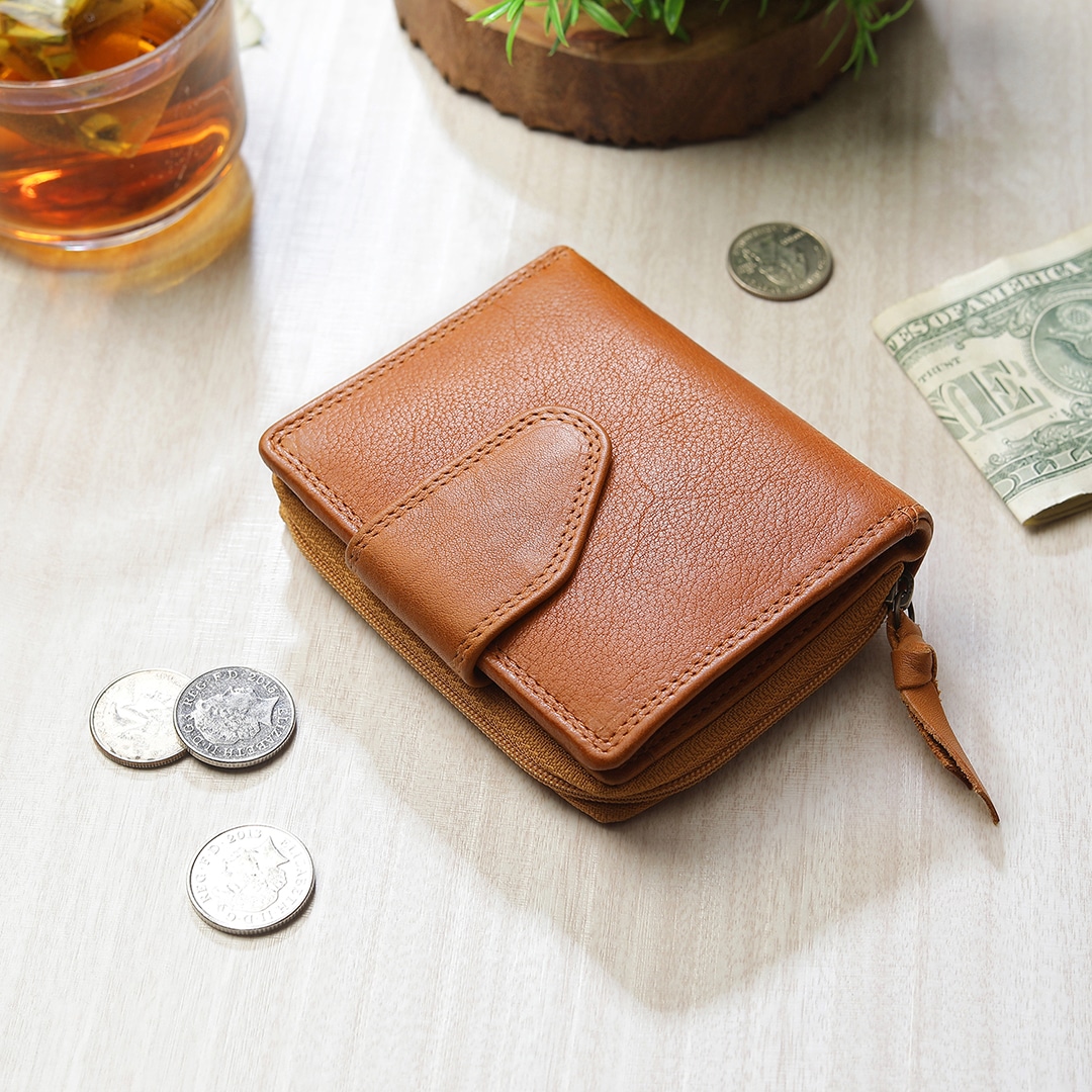 Indulge in the perfect blend of style, security, and practicality with the Selena Small Trifold Purse in the elegant Washed Cancun finish. Designed specifically for discerning women, this purse is crafted from premium real leather, offering a timeless sophistication that complements any lifestyle.