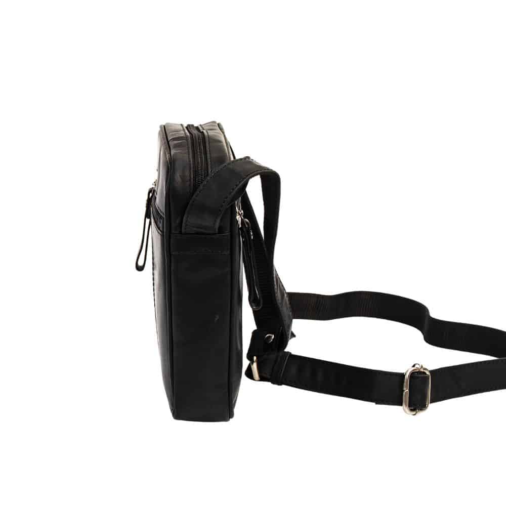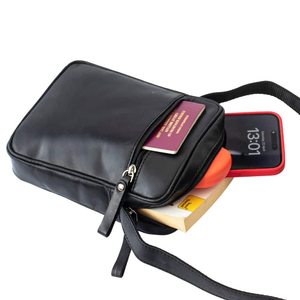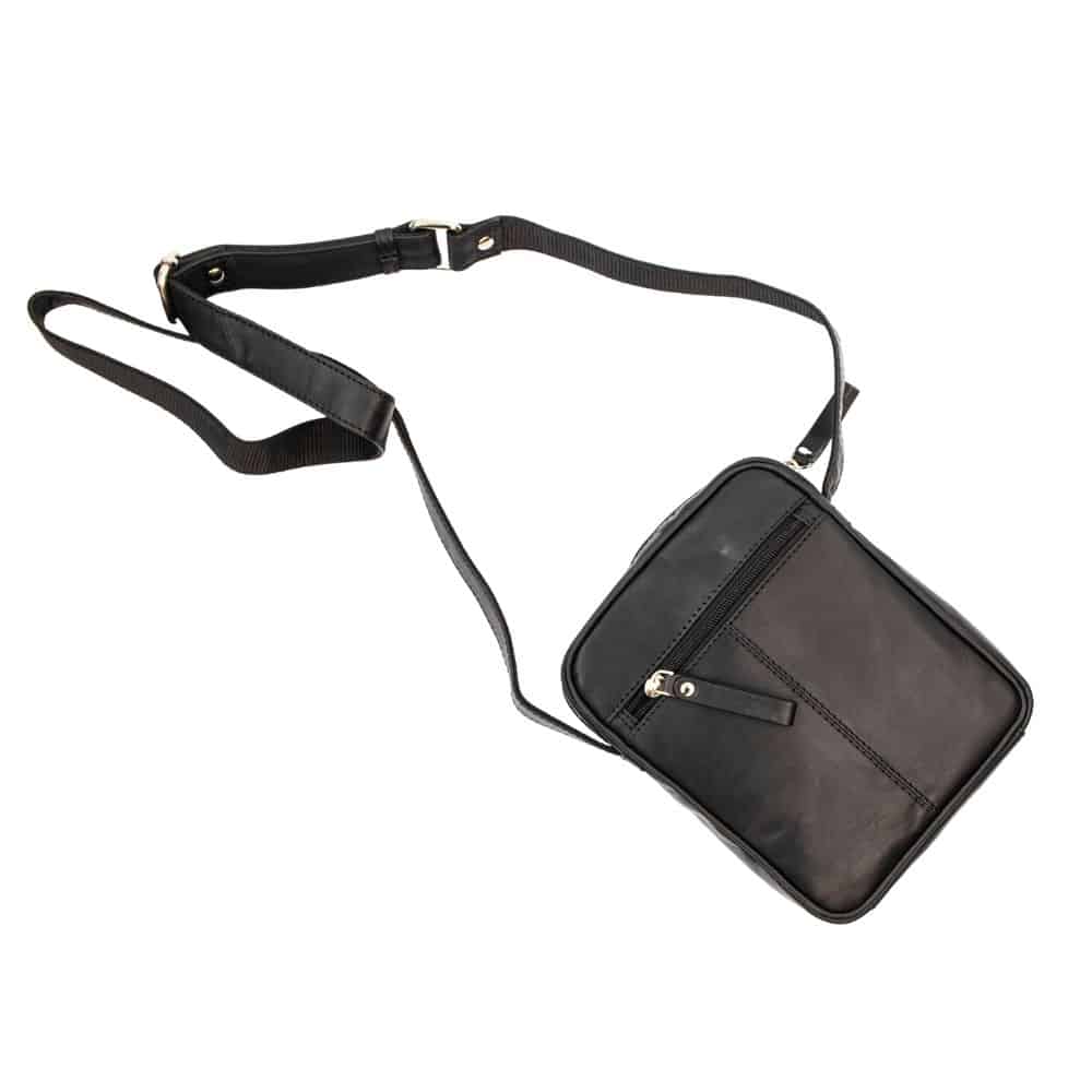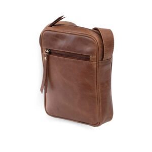 A leather shoulder flight bag for men in a classic style. The perfect man bag for carrying bits and bobs wherever you go.
