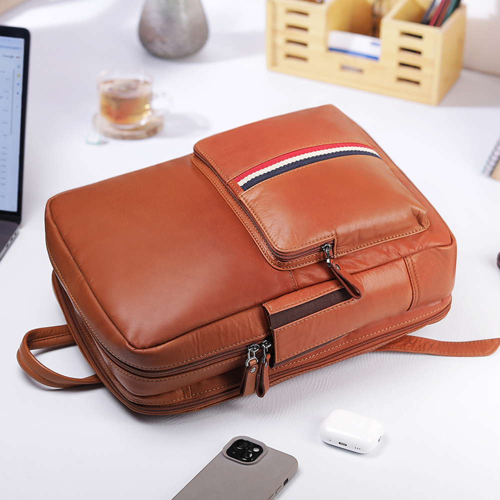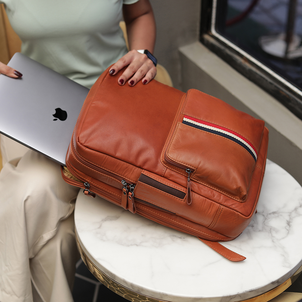 The Texan Laptop Backpack in Black is crafted from genuine leather, offering both style and functionality. Designed with two main compartments and adjustable ergonomic shoulder straps, this backpack provides unparalleled comfort for short or long trips.
