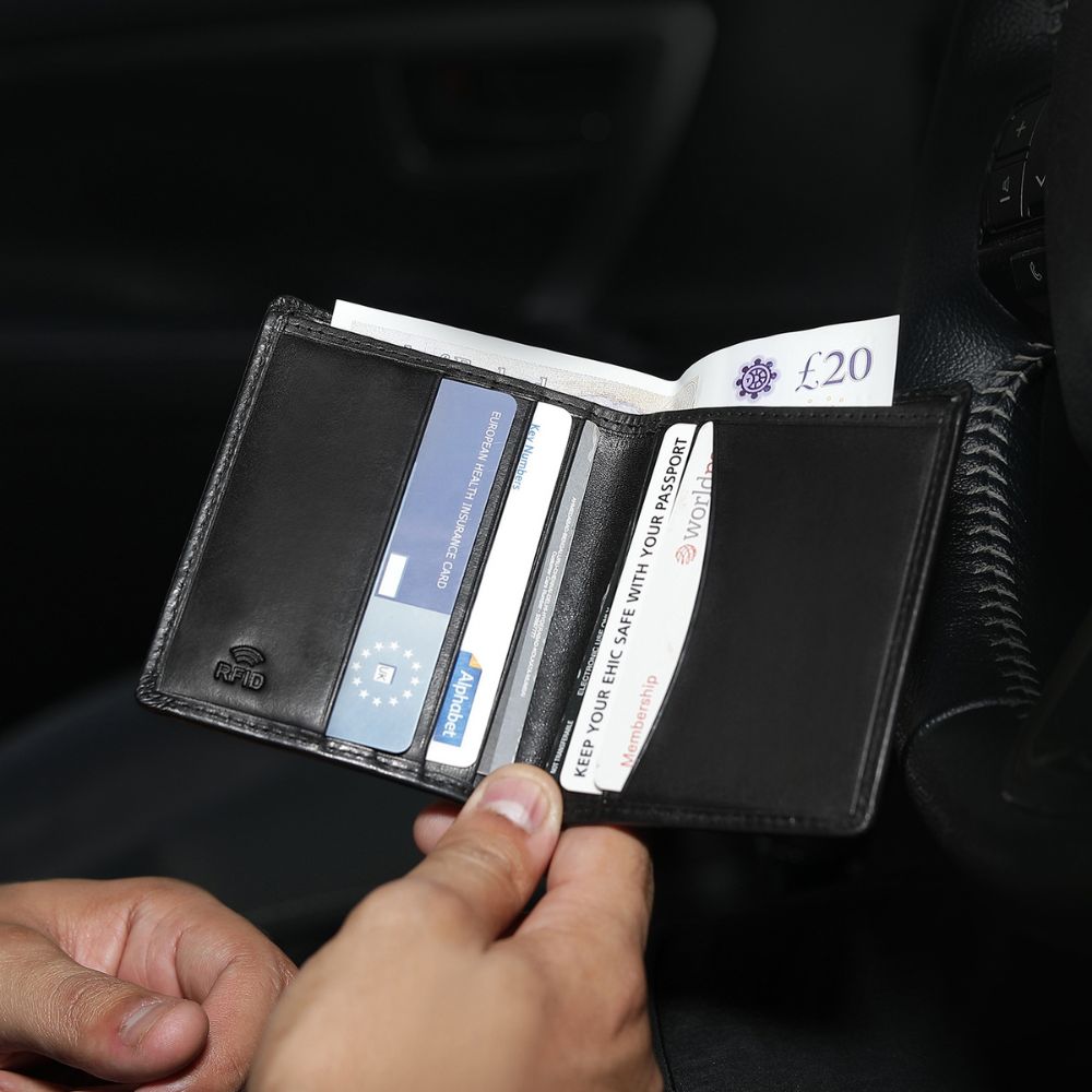The Tuscan Men’s Bifold Wallet is the ultimate accessory for the modern man. Made from genuine leather, this wallet is not only stylish but also practical, with RFID secure technology to keep your credit card information safe.