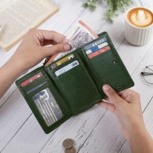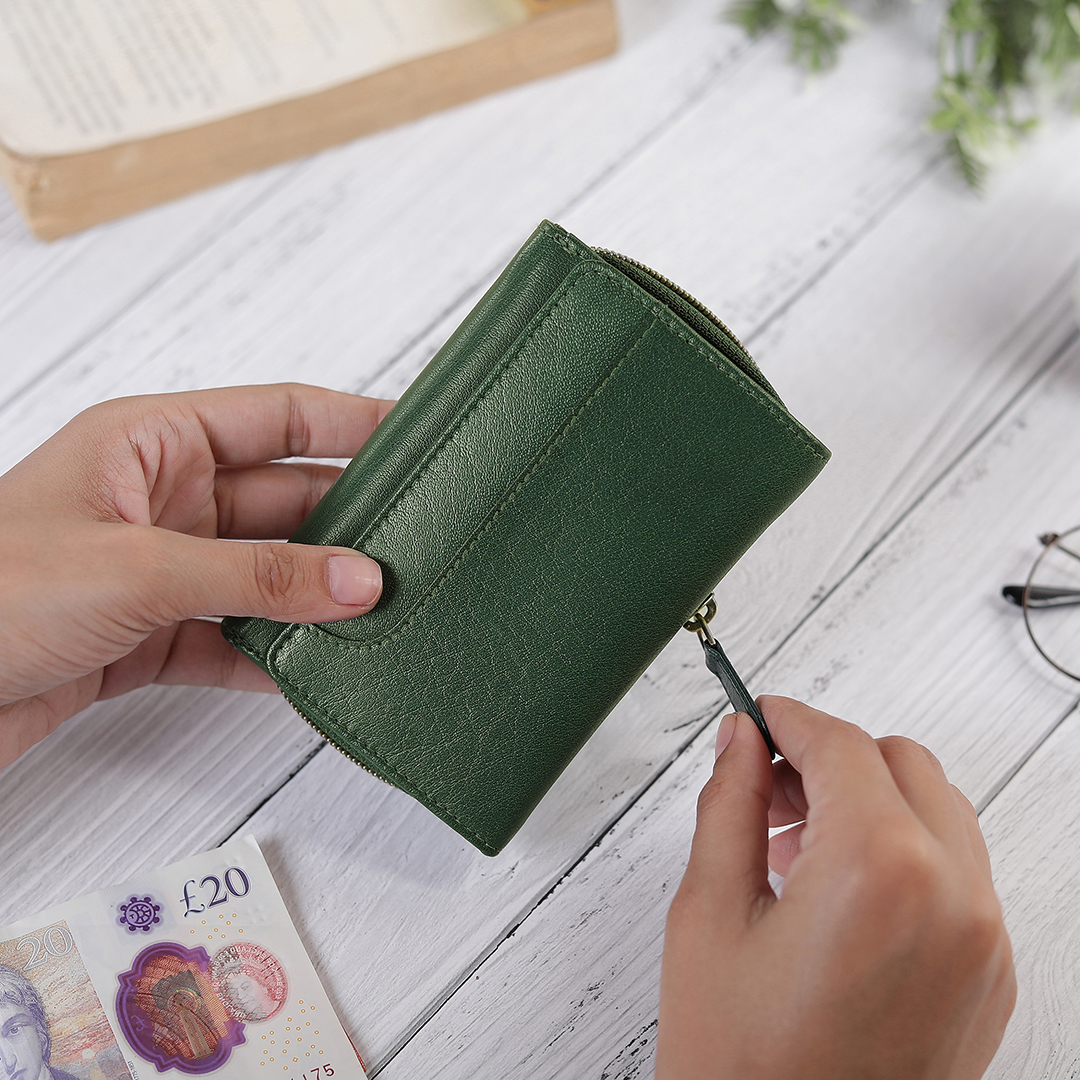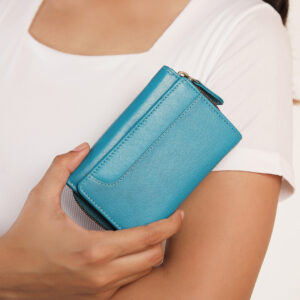 The Velura Leather Purse for Women is a compact yet stylish Zip Around Small Trifold Purse crafted from Genuine Leather. With RFID Security, it provides peace of mind while offering multiple Credit Card Slots, an ID Window, and Slip Pockets. The purse also includes a Note Section and a convenient External Zipped Coin Pocket, making it the perfect blend of practicality and elegance for everyday use.