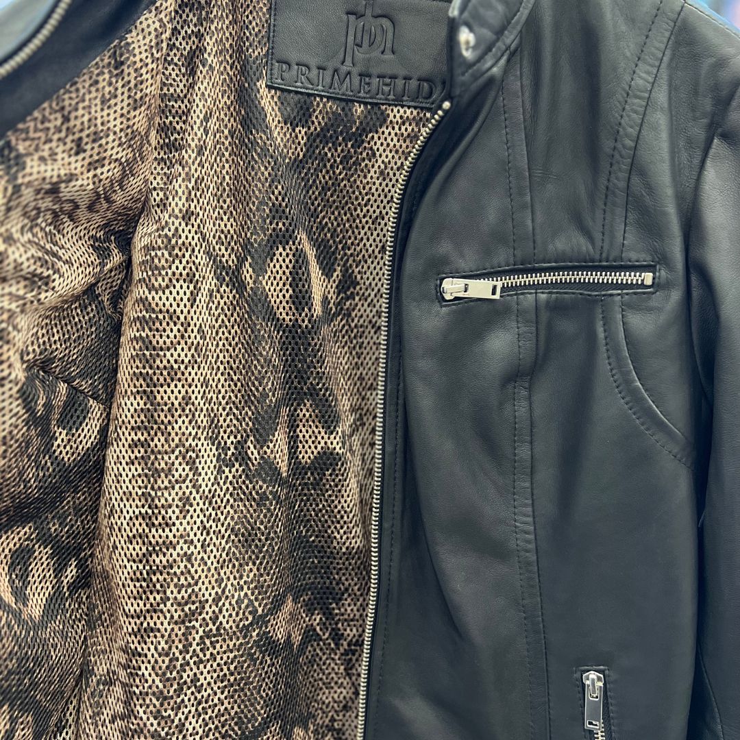 Are you looking for a timeless classic to update your wardrobe that oozes class and sophistication? Look no further than this Classic Women’s Leather Jacket! Crafted with premium genuine soft sheepskin leather, the jacket features an aniline finish to give it a subtle sheen. With a zipper closure and a buttoned short neck collar, the jacket also has four zipped pockets so you can securely store your items. To provide extra style, the internal lining has been designed with a snakeskin print mesh for a modern edge. The sleeves have zipped cuffs for comfort, ensuring the perfect fit. This timeless leather jacket will keep you warm and cosy in colder months and can be paired with all your favourite looks. Perfect for creating an effortlessly cool style, this jacket is a must-have for any wardrobe.