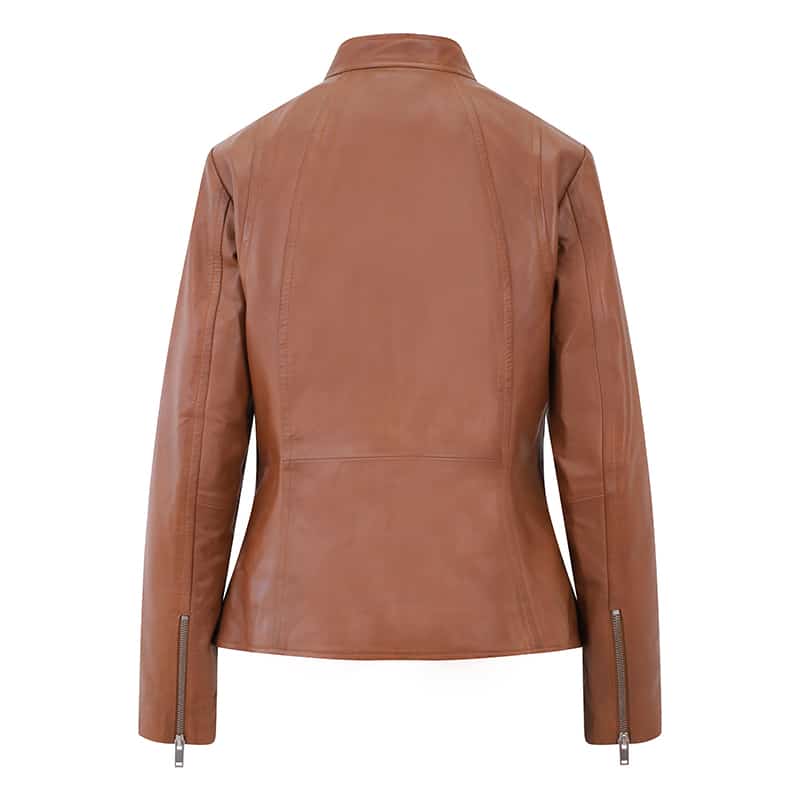 Treat yourself to the ultimate in timeless style with this Women’s Classic Leather Jacket. Crafted from premium genuine soft sheepskin, this jacket features an aniline finish for a luxuriously soft vibe that will last. The jacket features a zipper closure with a buttoned short neck collar, and four zipped pockets so you can keep all your essentials secure. The internal snakeskin print mesh lining adds an extra touch of detail that truly makes this jacket stand apart. Finished with zipped cuffs on the sleeves, this Women’s Classic Leather Jacket in Tan is an essential wardrobe piece that you won’t be able to resist!